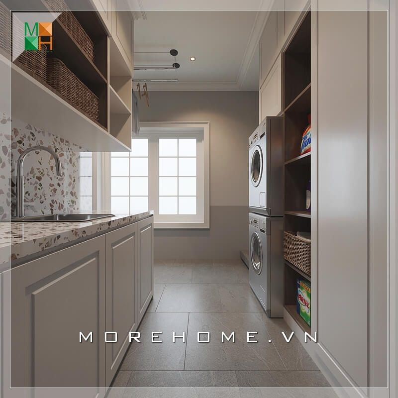 Thiết kế phòng bếp chung cư tân cổ điển sang trọng, thiết bị phòng bếp hiện đại tạo không gian nấu nướng tiện nghi cho người nội trợ